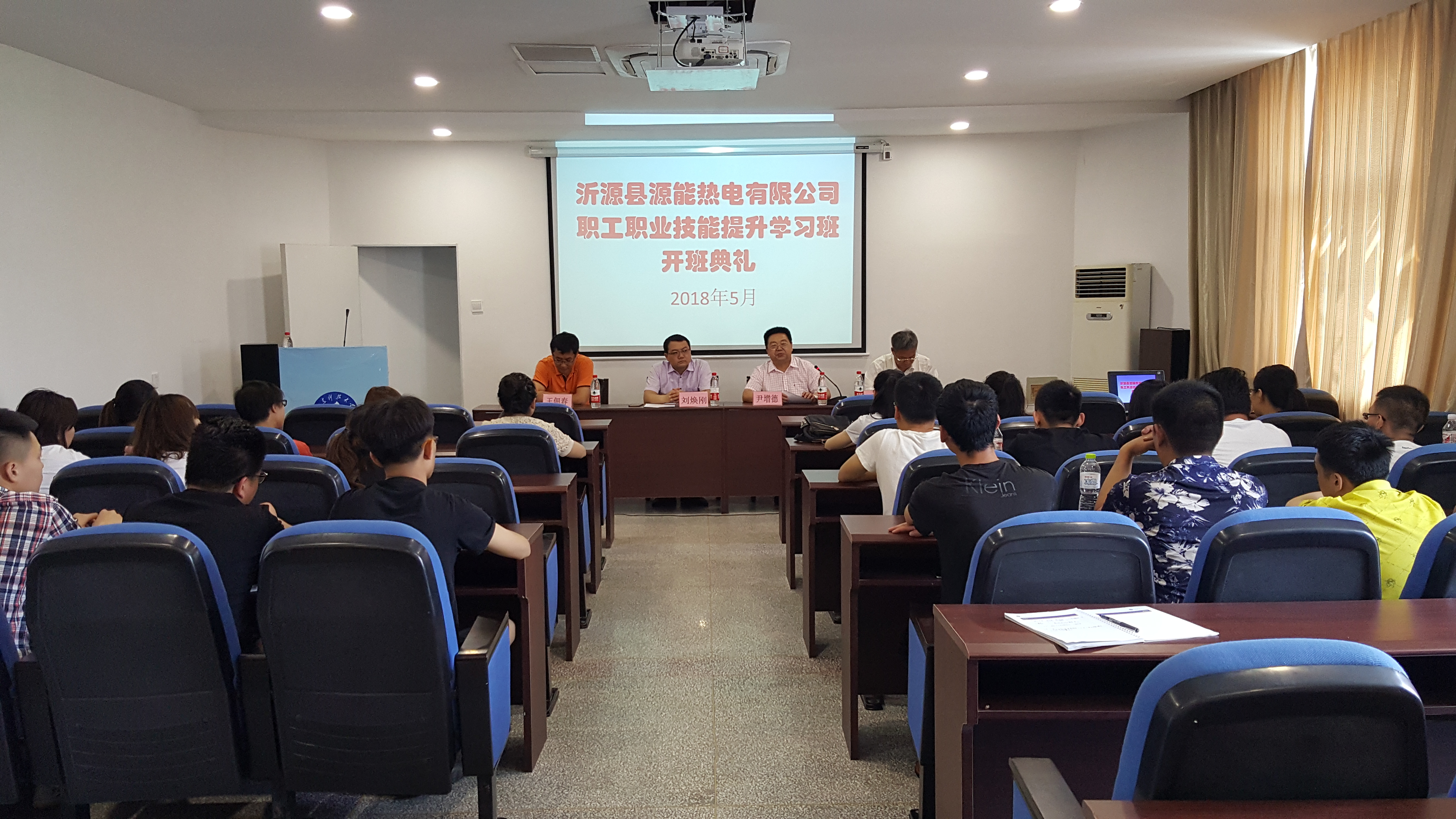 5月14日,沂源县源能热电有限公司员工2018年岗前职业技能提升学习班在beat365在线唯一官网举行,源能热电人事部经理刘焕刚、培训主管孙延英,beat365在线唯一官网院长尹增德、副院长王文胜、王佃春及学习班全体学员出席开班仪式。