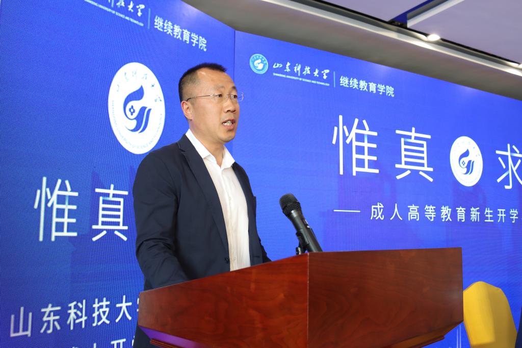 受校长姚庆国、副校长曾庆田委托,王靖磊做了题为“到中流击水,做负重前行的当班人”的讲话,代表学校向2021级16800名新同学的到来表示真诚欢迎和热烈祝贺,向关心、支持他们成长的家人与亲友表示感谢。就继续教育的学习特点,和同学们一起探讨了继续教育阶段如何做好一名学习者和当班人,提出四点希望。首先希望同学们做学会求知的学习者。要学会学习,要广学、博学,要带着岗位职责学,真正学到对工作有用的知识。第二,希望同学们做学思践悟的学习者。“博学,审问,慎思,明辨,笃行。”要学会做事、学会共处、学会生存。要具备“危机中育新机、变局中开新局”的能力,提高素质,增强自主性、能动性、创造性和责任感。第三,希望同学们做一以贯之的学习者。掌握认识世界的客观方法,要具备“千淘万漉虽辛苦,吹尽狂沙始到金”的坚韧精神,做到潜心求学与踏实工作两不误。第四,希望同学们做知行合一的当班人。希望同学们树立正确的世界观、人生观、价值观,做到德行合一,知行合一。