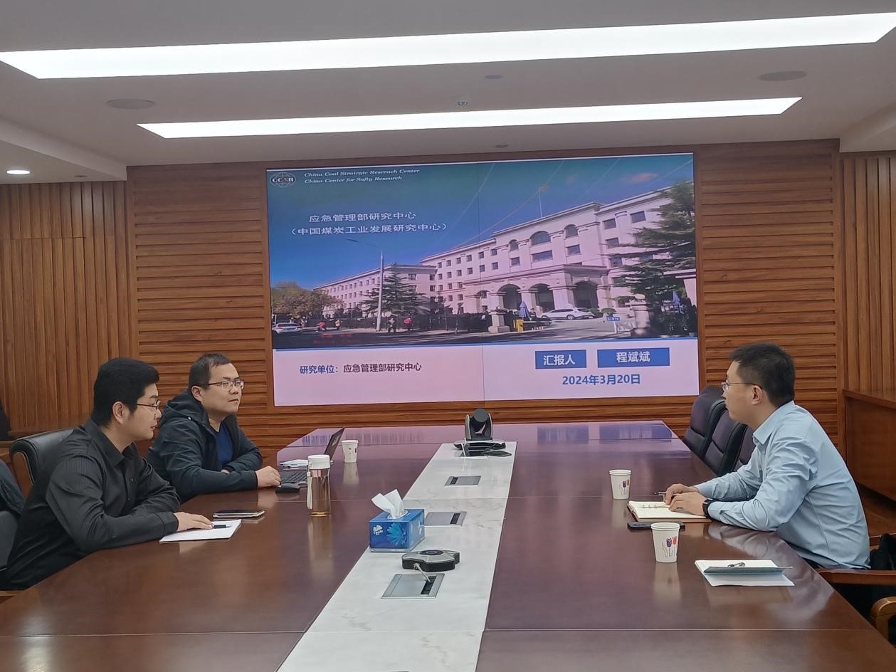 为扎实推进学校高端培训基地建设和高质量发展,beat365在线唯一官网院长马鹤、院长助理孙运表一行赴应急管理部研究中心(中国煤炭工业发展研究中心)开展合作交流活动,应急管理部研究中心发展研究五处副处长王国栋、主任程斌斌等接待了马鹤一行。