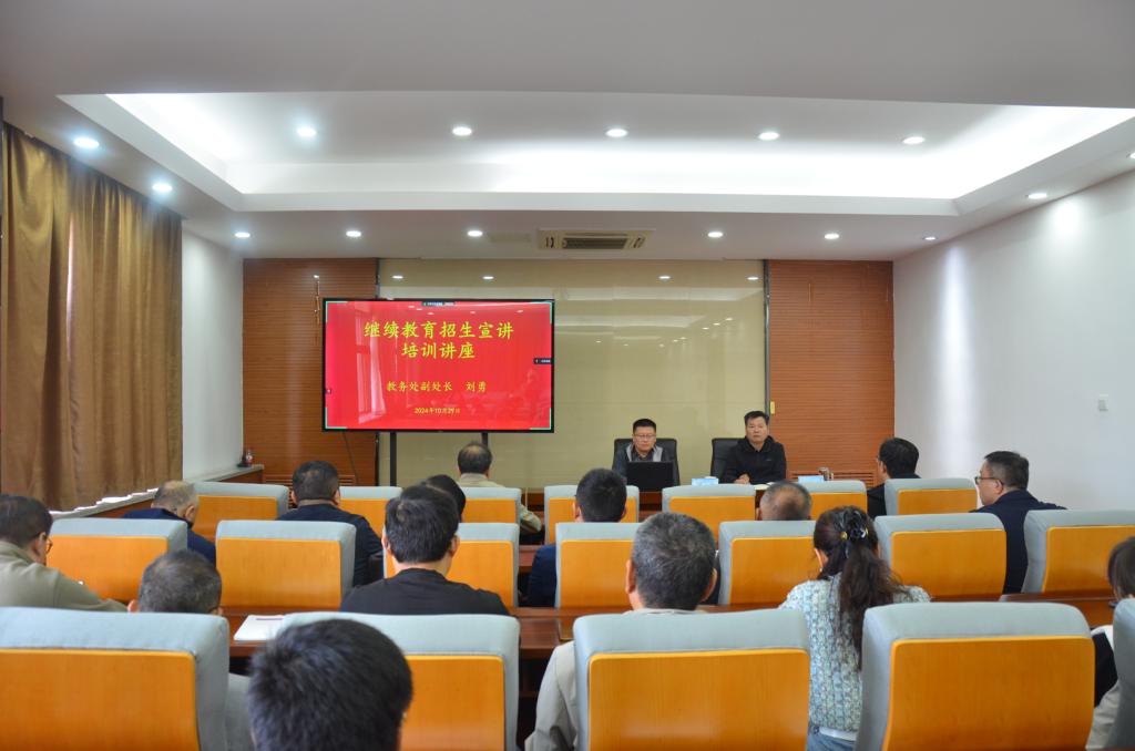 为进一步提升学校继续教育工作在社会上的知名度和影响力,10月29日,beat365在线唯一官网邀请教务处副处长刘勇为学院干部职工进行继续教育工作宣传宣讲培训。培训会由学院党总支书记贾长响主持。