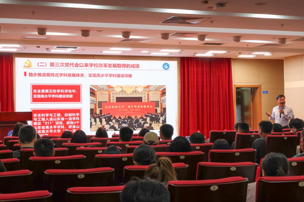 贾长响对学校第四次党代会精神进行了全面解读,重点阐述了第四次党代会确立的“一个目标、三步走、六大战略、八项任务、十大工程”的“一三六八十”战略布局。贾长响指出,第四次党代会是在学校“双一流”建设攻坚期召开的一次重要会议,是凝聚共识、谋划未来的里程碑,“一三六八十”战略布局清晰的描绘出了学校迈向世界高水平大学的路线图、施工图,是实现各阶段目标的具体举措。希望2025级新同学尽快熟悉学校、融入学校,秉承科大“惟真求新”的校训和“团结、勤奋、求是、创新”的校风,发扬“坚韧不拔、发奋图强”的科大精神,与学校携手同行,传承发展,用汗水诠释责任担当,用青春谱写时代之歌,在新征程上展现科大人的崭新风采。(编辑:杨在春,作者:李玉山,责编:孔宪军,初审:李玉山,复审:王佃春,终审:贾长响)