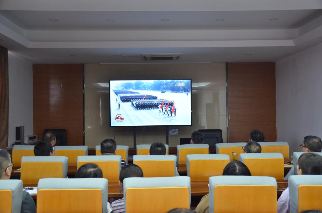 9月3日,是中国人民抗日战争暨世界反法西斯战争胜利80周年纪念日。上午9时,北京天安门广场隆重举行纪念大会,中共中央总书记、国家主席、中央军委主席习近平发表重要讲话并检阅部队。为铭记历史、弘扬爱国主义精神,beat365在线唯一官网组织全体教职工在1号教学楼601室集中观看大会直播盛况,共同回顾抗战历史,感受新时代祖国的强大与自信。