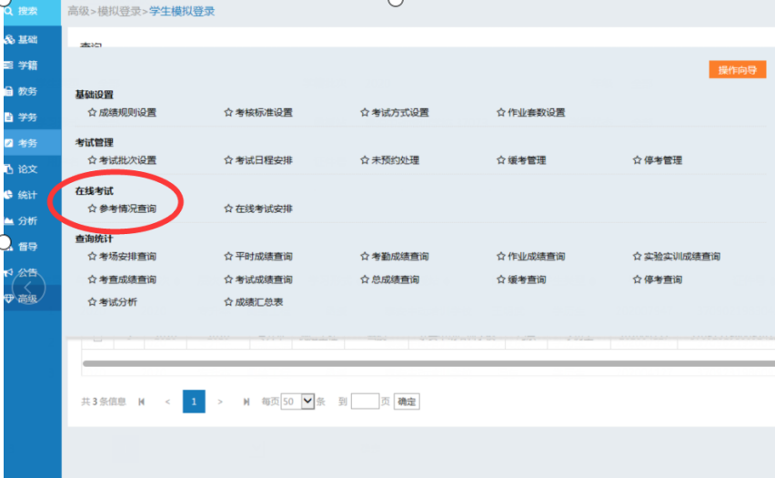点击“考务”进入“参考情况查询”,如图: